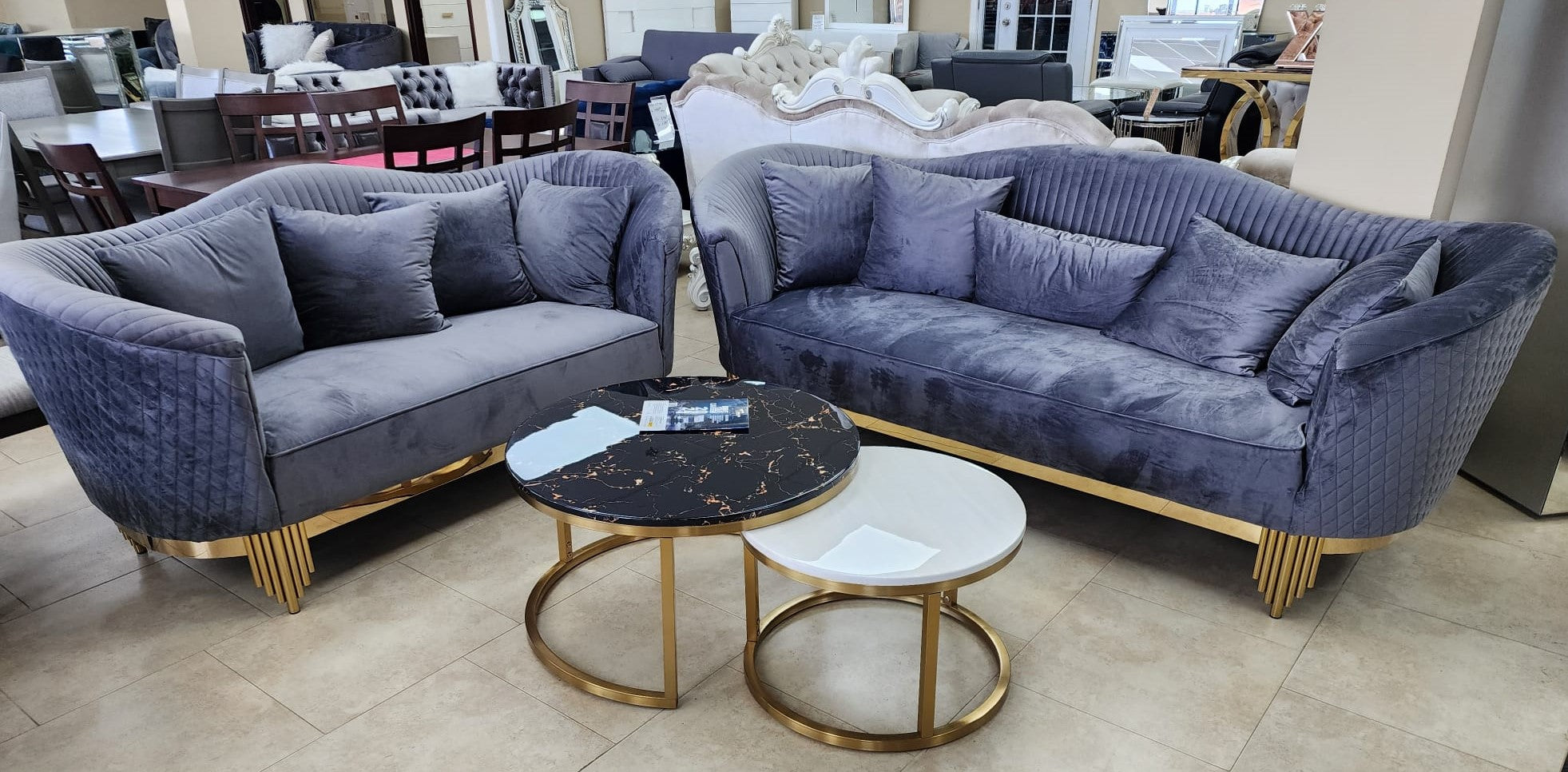 7770 Loveseat & chairs Grey Fabric-Clearance